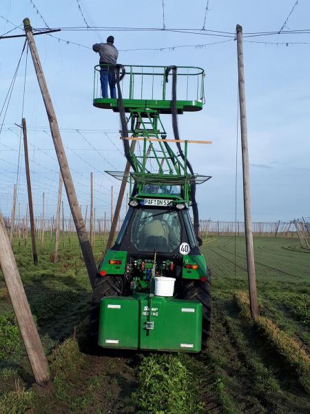 Die Hopfenkanzel darf nur bestimmungsgemäß für den dafür vorgesehenen Einsatzzweck verwendet werden. Sie dient ausschließlich zur Anbringung des Anleitdrahtes an die Hopfengerüstanlage, sowie die Instandhaltung des Drahtnetzes von Hopfengerüstanlagen.